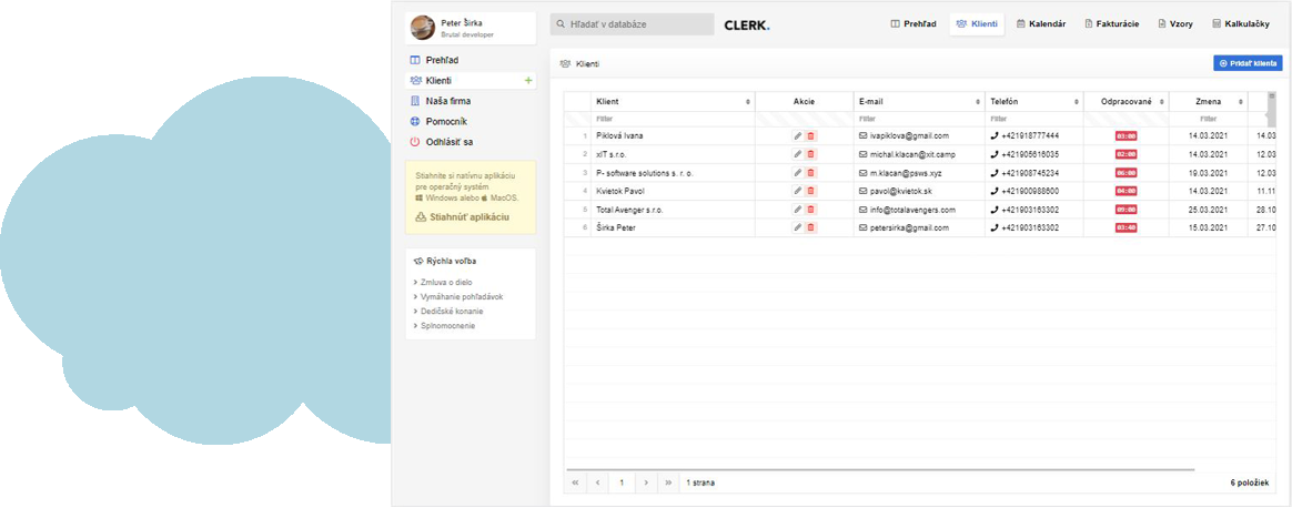 U nás v Clerku sme si vedomí citlivosti a dôležitosti dát, s ktorými ako advokáti pracujete, a preto je pre nás ich bezpečnosť vždy na prvom mieste. Za účelom zabezpečenia maximálnej ochrany a dostupnosti Vašich údajov iba pre registrovaných používateľov patriacich k Vašej advokátskej kancelárii využívame viacero rôznych metód: